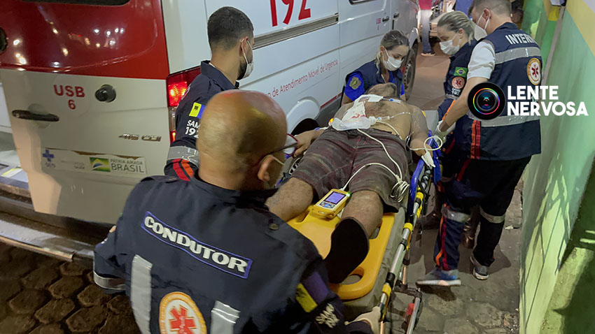 Populares colocaram o baleado dentro de um carro particular e estavam lhe levando ao hospital. No caminho, ele foi transferido para uma ambulância do Samu